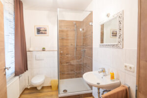 Welcome to Fürstensteiner Hof – your cozy accommodation in the heart of the Bavarian Forest. Our spacious double rooms offer everything you need for a relaxing stay: a comfortable double bed, private bathroom with shower, TV, and a small coffee corner for the perfect start to your day.