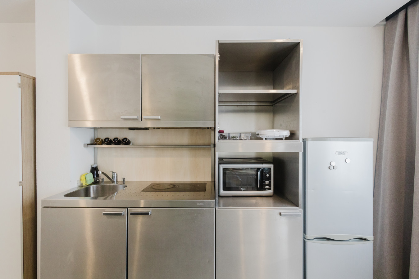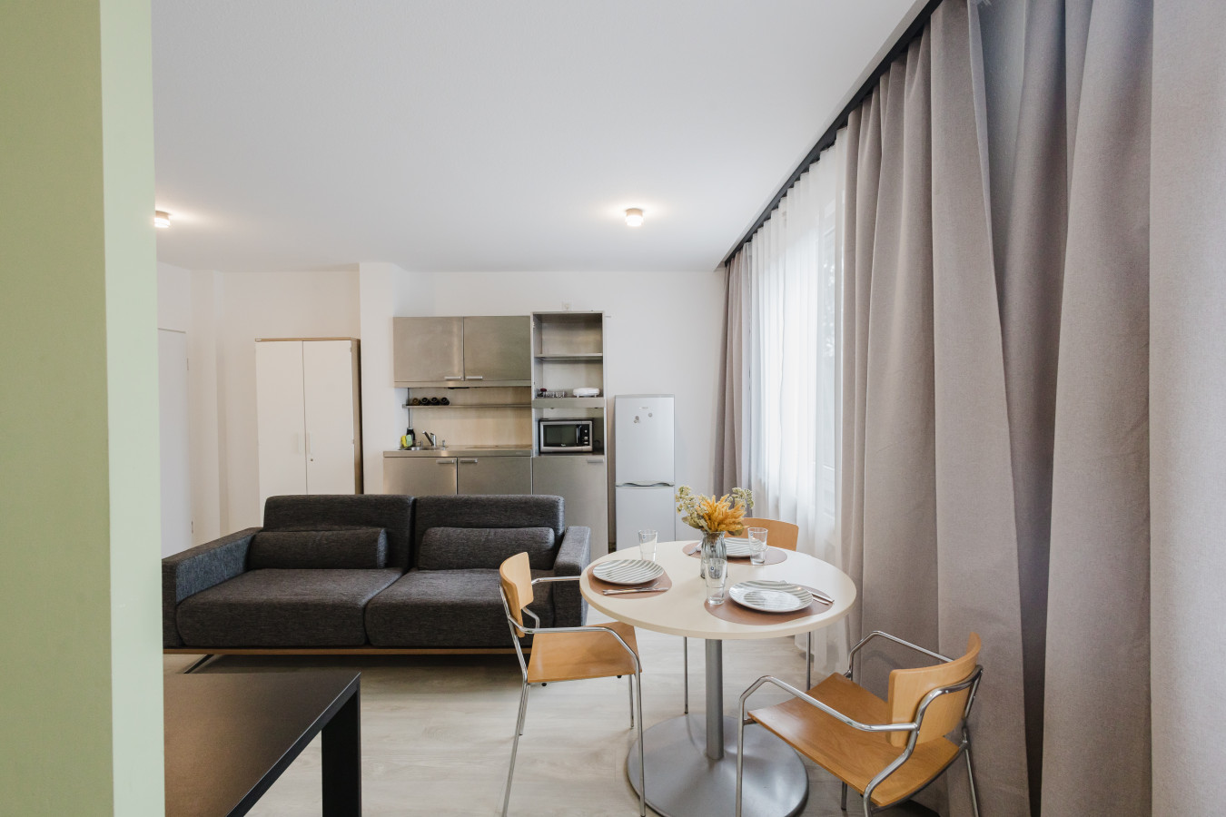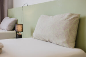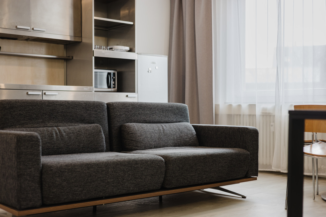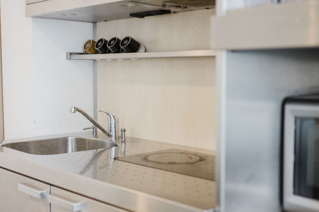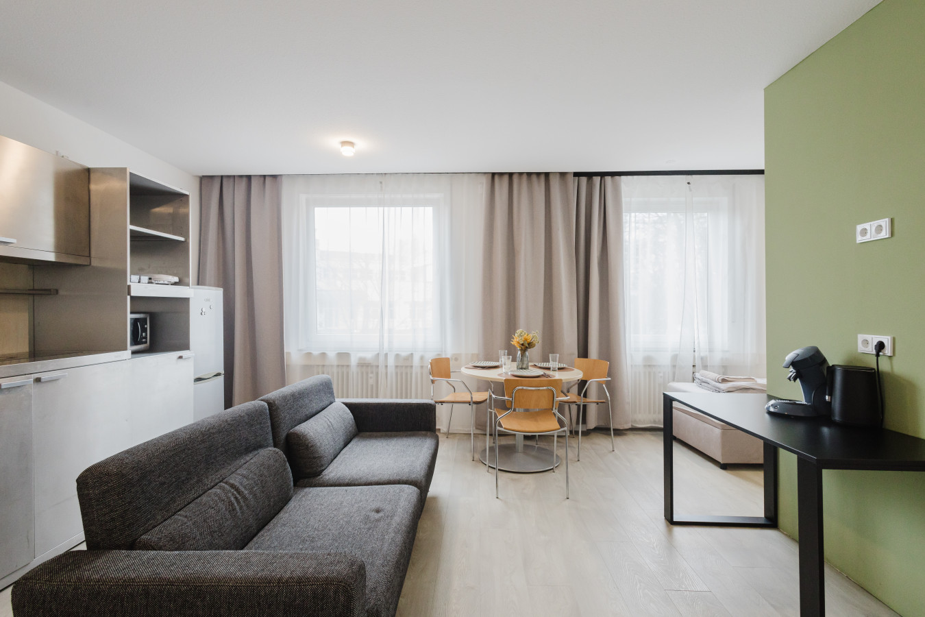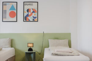 Our rooms are modern and minimalistic, featuring stylish furniture and everything you need for a comfortable stay. A spacious private kitchen is available, including kitchen utensils and a coffee machine – perfect if you want to stay flexible and prepare your own meals.