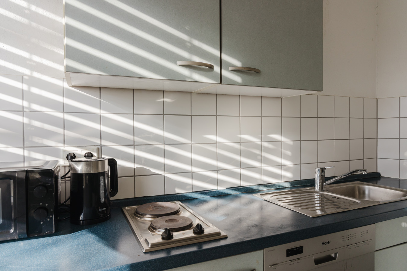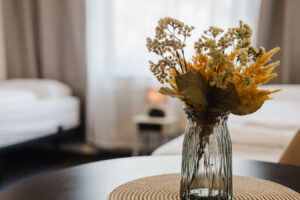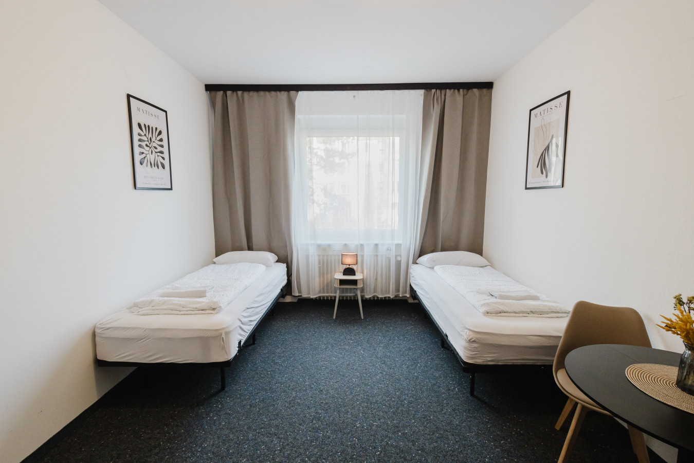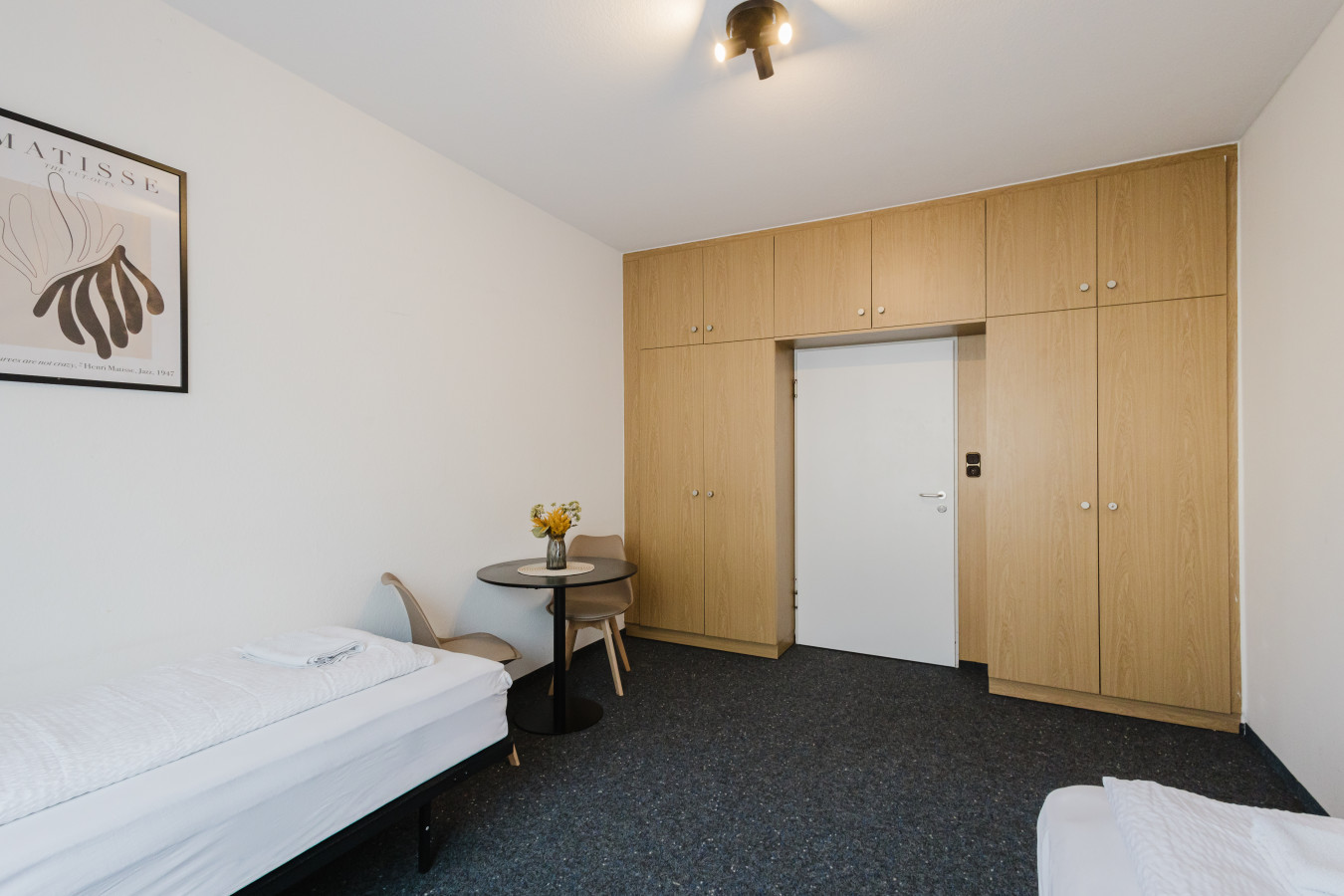 Our rooms are modern and minimalistic, featuring stylish furniture and everything you need for a comfortable stay. A shared kitchen is available for all guests, including kitchen utensils and a coffee machine – perfect if you want to stay flexible and prepare your own meals.