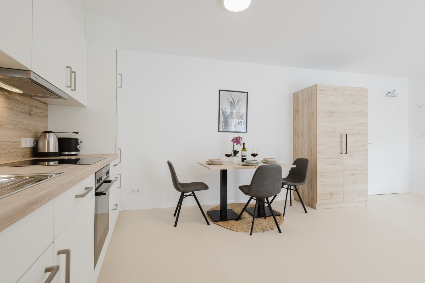 ✔ Fully equipped kitchen with stove, oven, coffee maker, kettle, tea station, and complete kitchenware