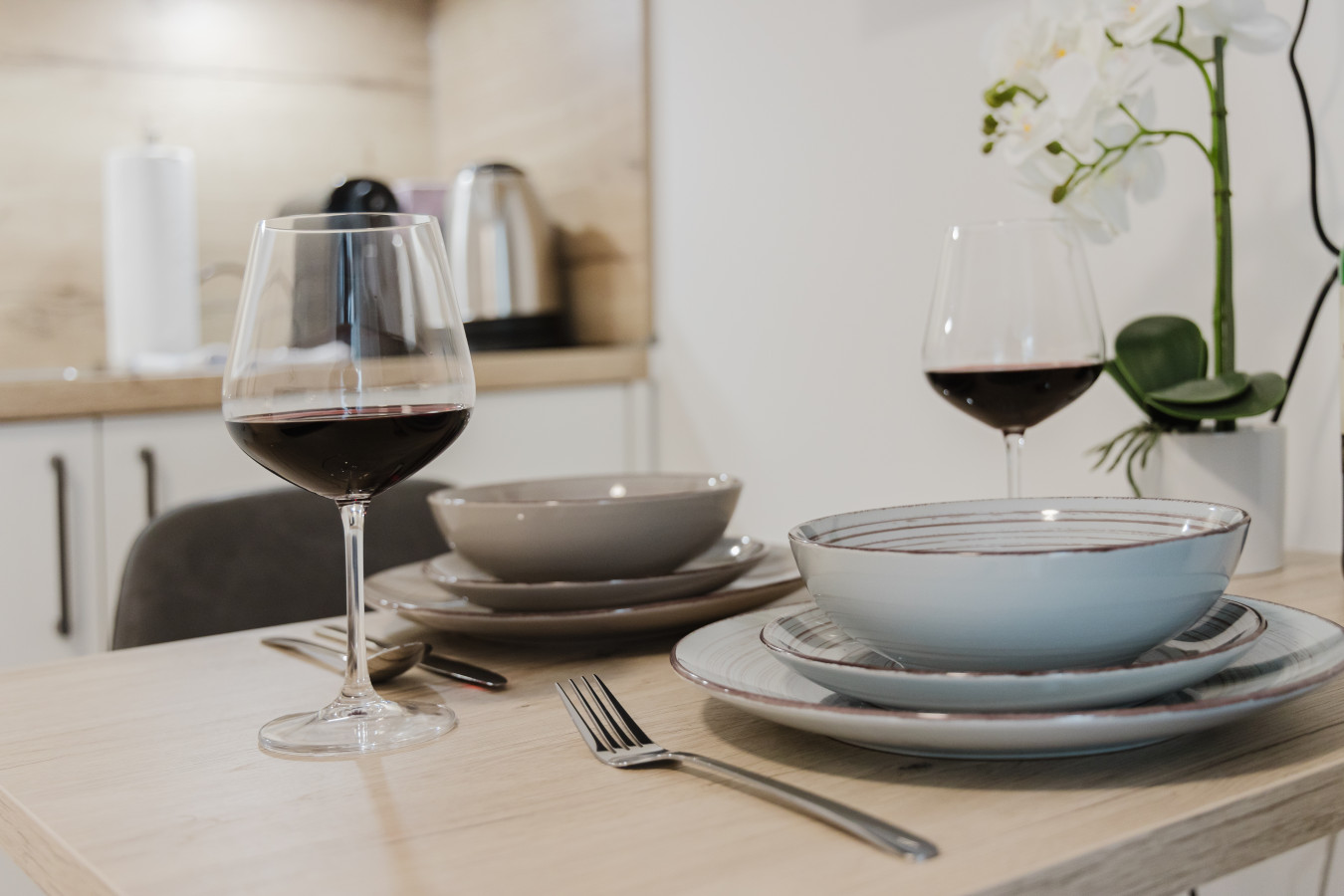 ✔ Fully equipped kitchen with stove, oven, coffee maker, kettle, tea station, and complete kitchenware