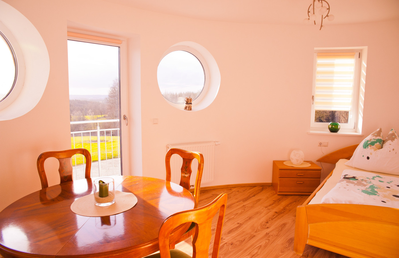 The Topfit Tower View Suite – Countryside Panorama is located in the tower of the Topfit Leisure Park in Freinberg and offers a comfortable stay for two guests.