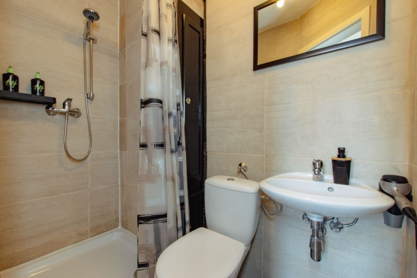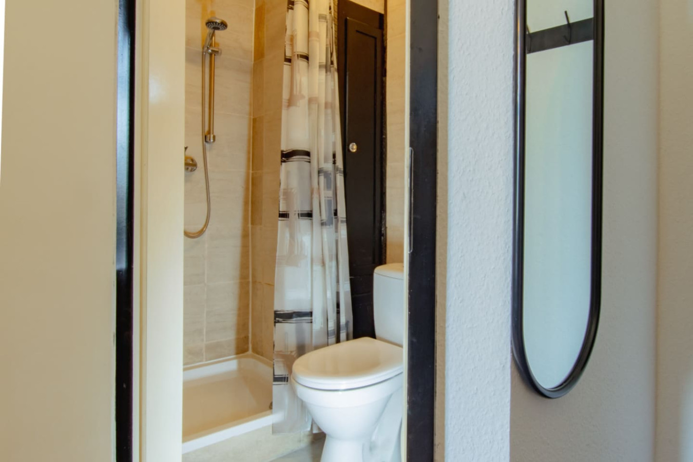 Bathroom: Private bathroom with shower, sink, and toilet.